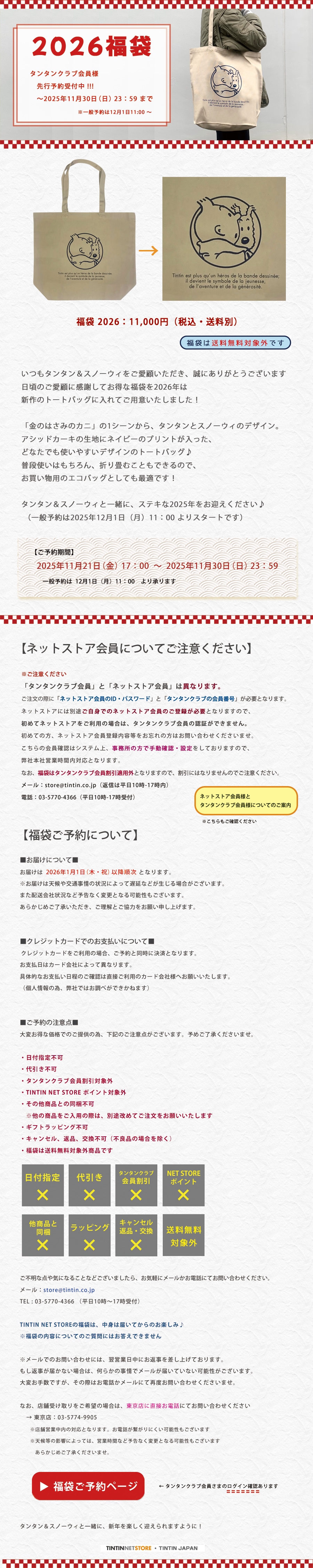 ネットストア会員様とタンタンクラブ会員さまについてのご案内 タンタン福袋2026 タンタンクラブ先行予約