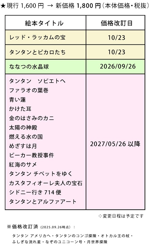 『タンタンの冒険』の日本語絵本を2025年5月26日(月)〜順次価格改定しております。 お客様にはご負担をお掛けすることになりますことを |